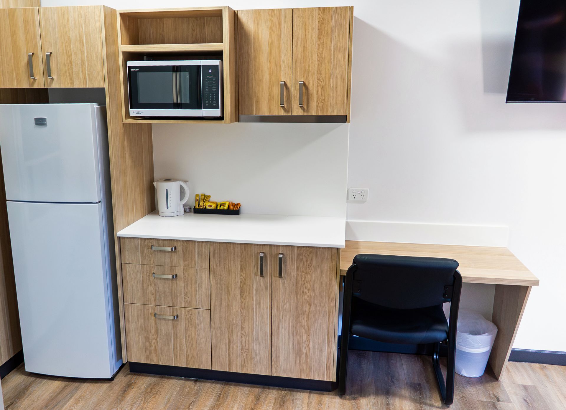 Our Deluxe Queen and Twin Motel Rooms are modern, spacious and designed with comfort in mind. Each room features an ensuite bathroom, air-conditioning, Smart TV, and a well-appointed kitchenette including a large fridge, air fryer, crockery and cutlery — ideal for guests wanting the convenience of self-contained accommodation. Whether you’re a corporate guest, contractor or traveller passing through, you’ll find everything you need for a restful stay.